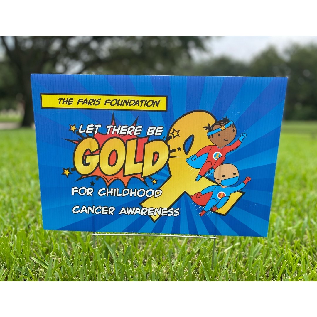 Show your GOLDEN support for Childhood Cancer Awareness Month with this 18" x 24" yard sign (metal stake included).